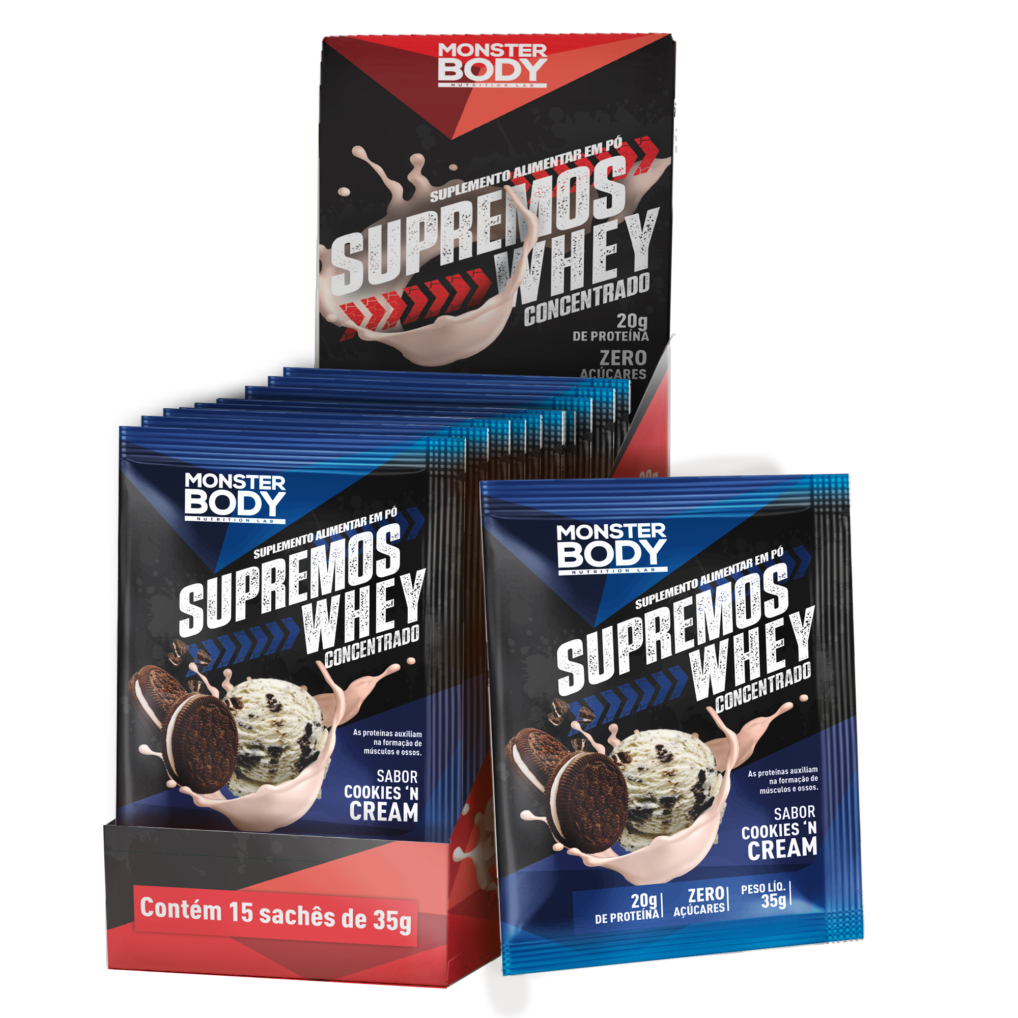 Whey Concentrado Cookies And Cream Supremo´s - Display c/ 15 Sachês de 35g