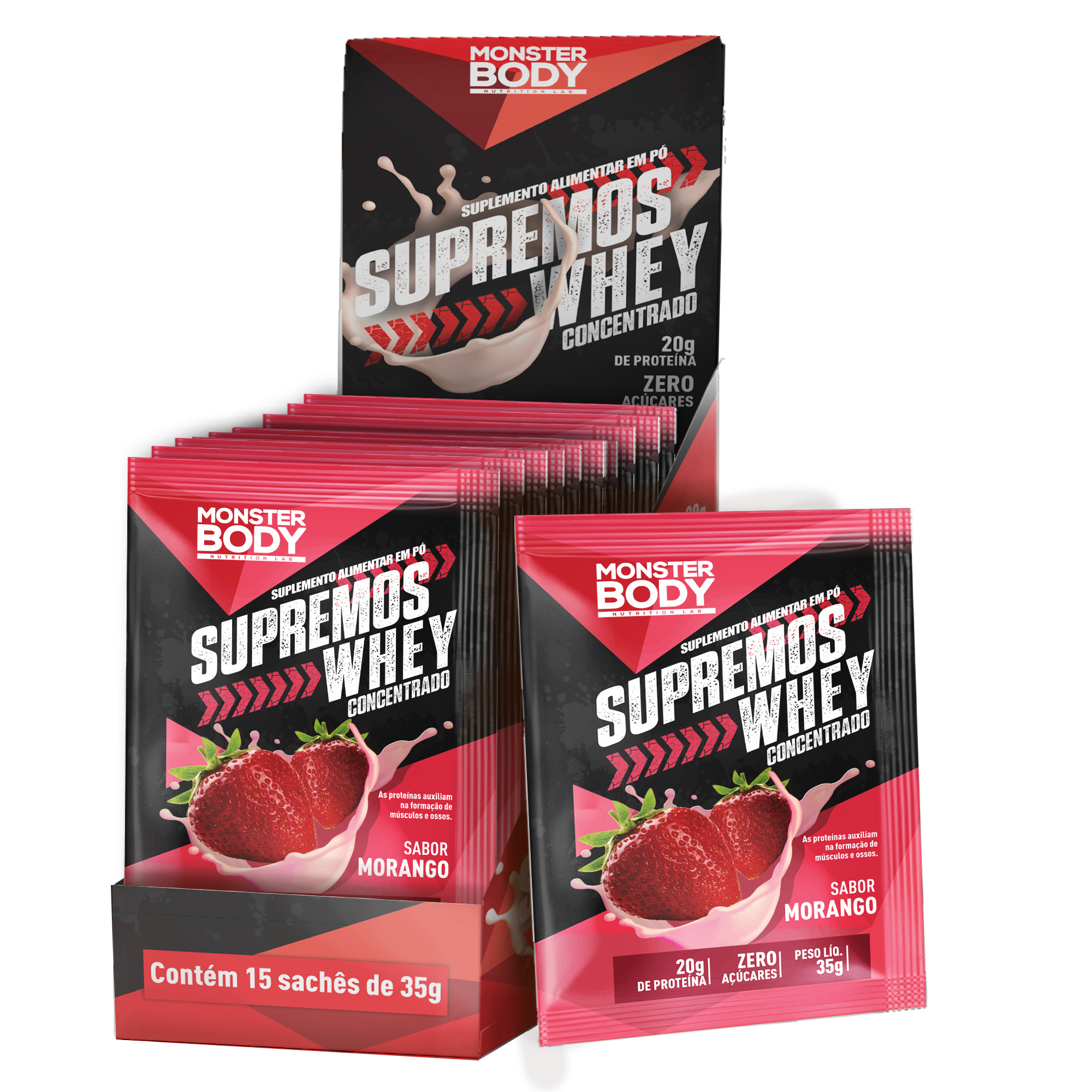 Whey Concentrado Morango Supremo´s - Display c/ 15 Sachês de 35g